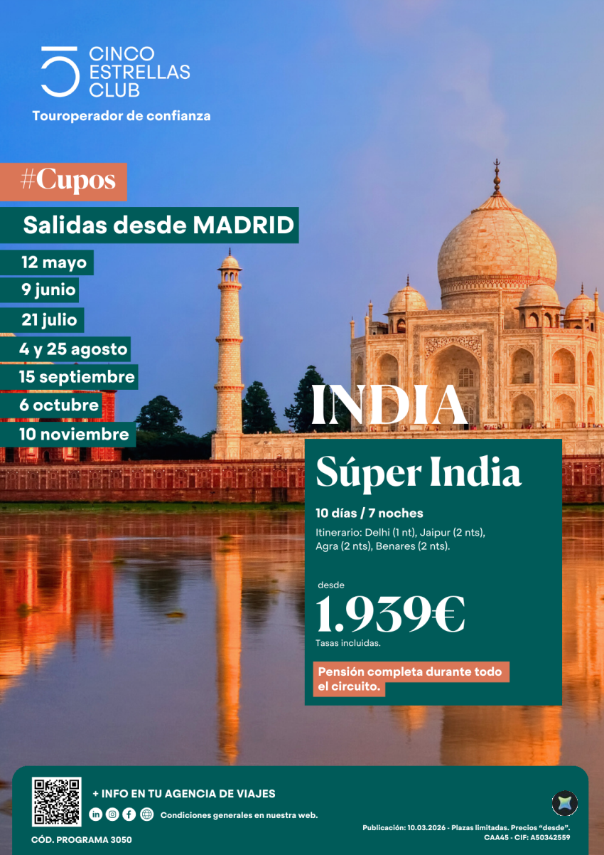 Cupos | Súper India 10ds/7ns dsd 1.939€ Sal: 12.05-09.06-21.07-4 y 25.08-15.09-06.10-10.11 dsd Madrid en PC