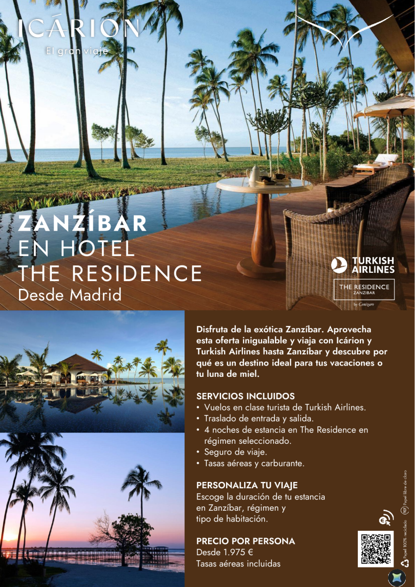 Zanzíbar en hotel The Residence con Turkish Airlines